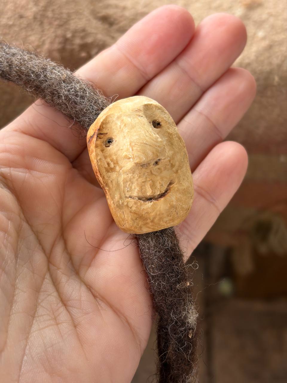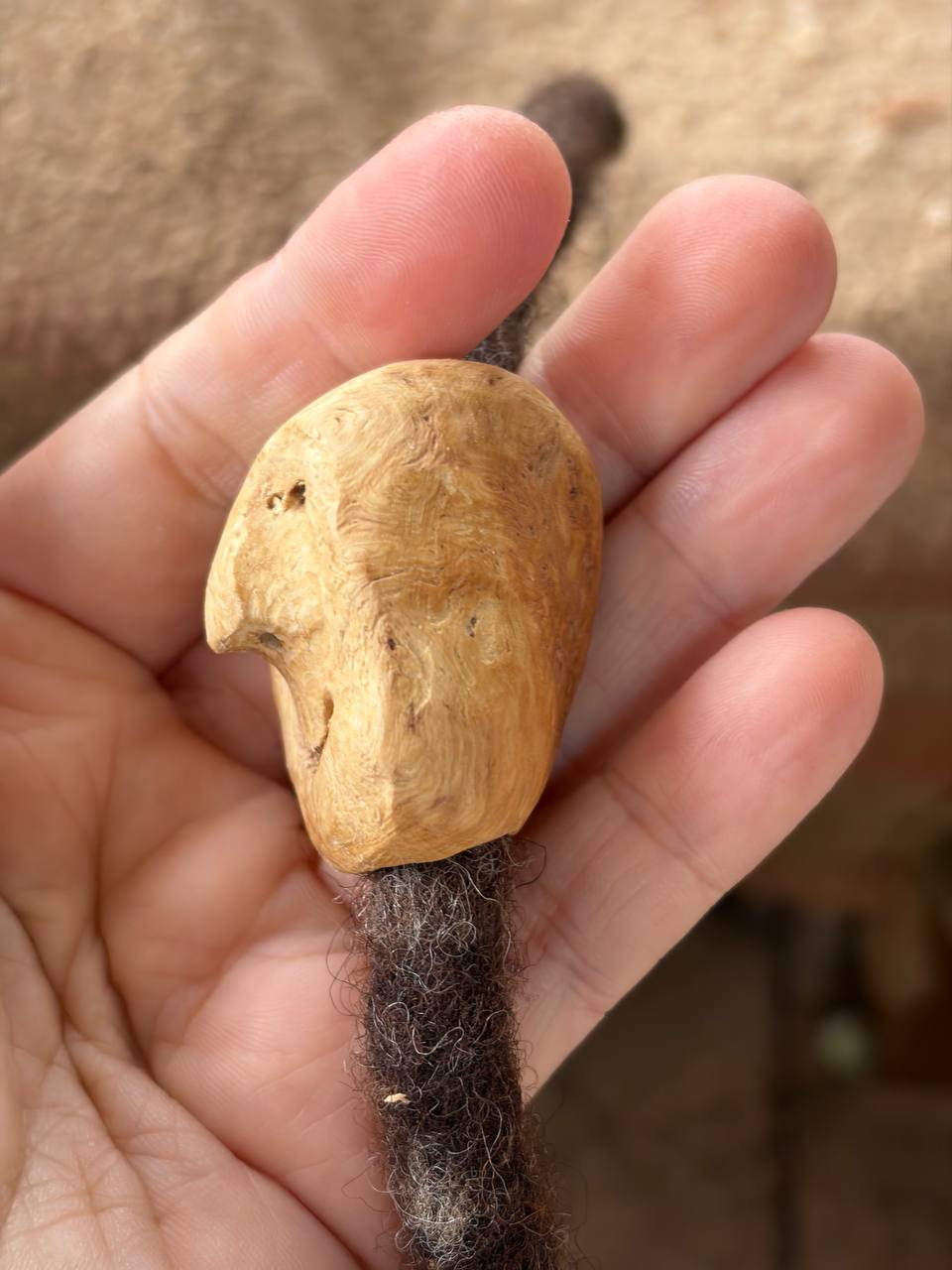 Dieser kleine Dreadwichtel hat seinen ganz eigenen Kopf – und der steckt voller Charme! Aus einer seltenen Baumperle geschnitzt, trägt er die natürliche Form und Maserung des Holzes mit Stolz. Kein Wichtel gleicht dem anderen, denn die Natur hat jeden von ihnen anders wachsen lassen.