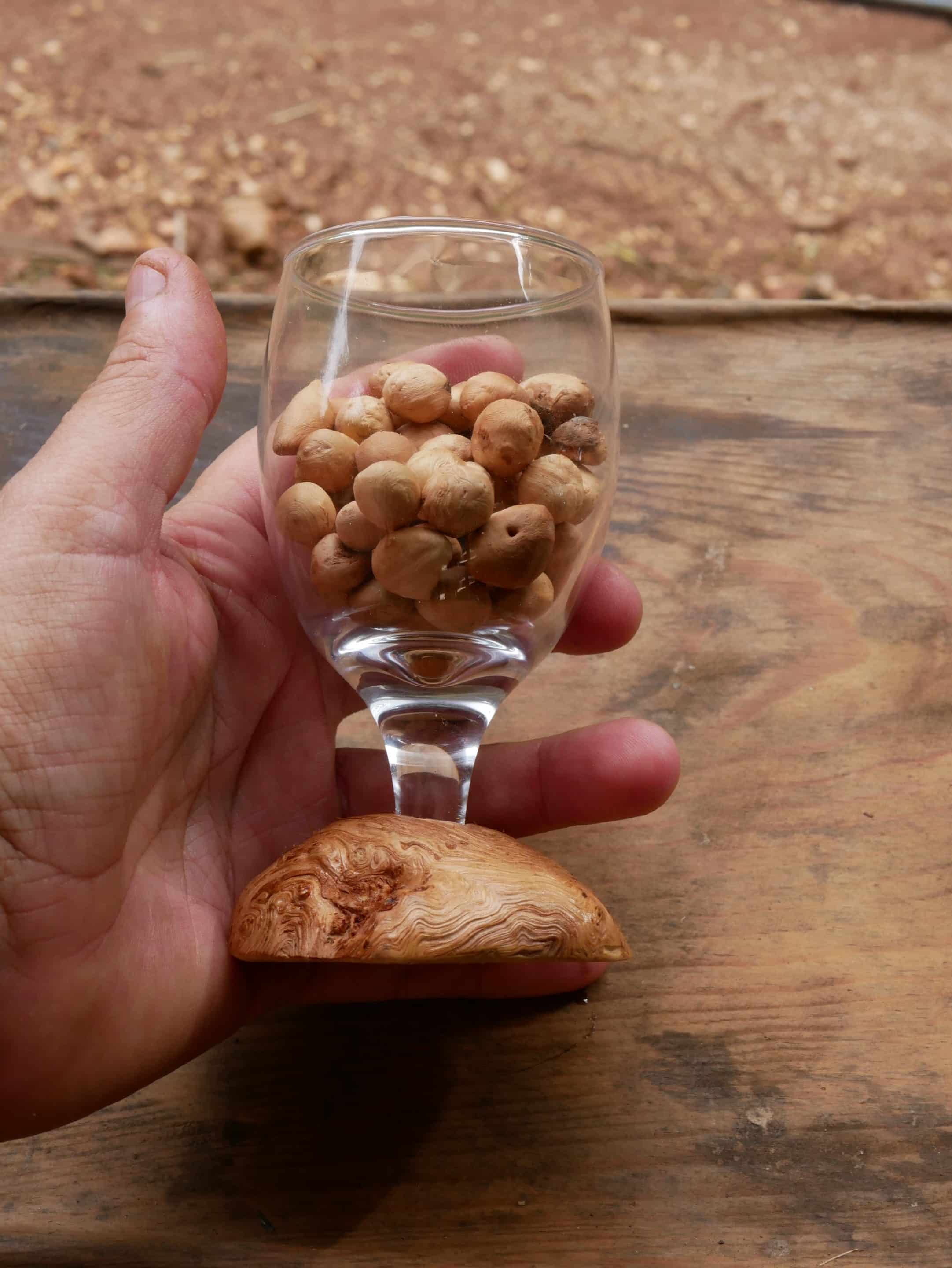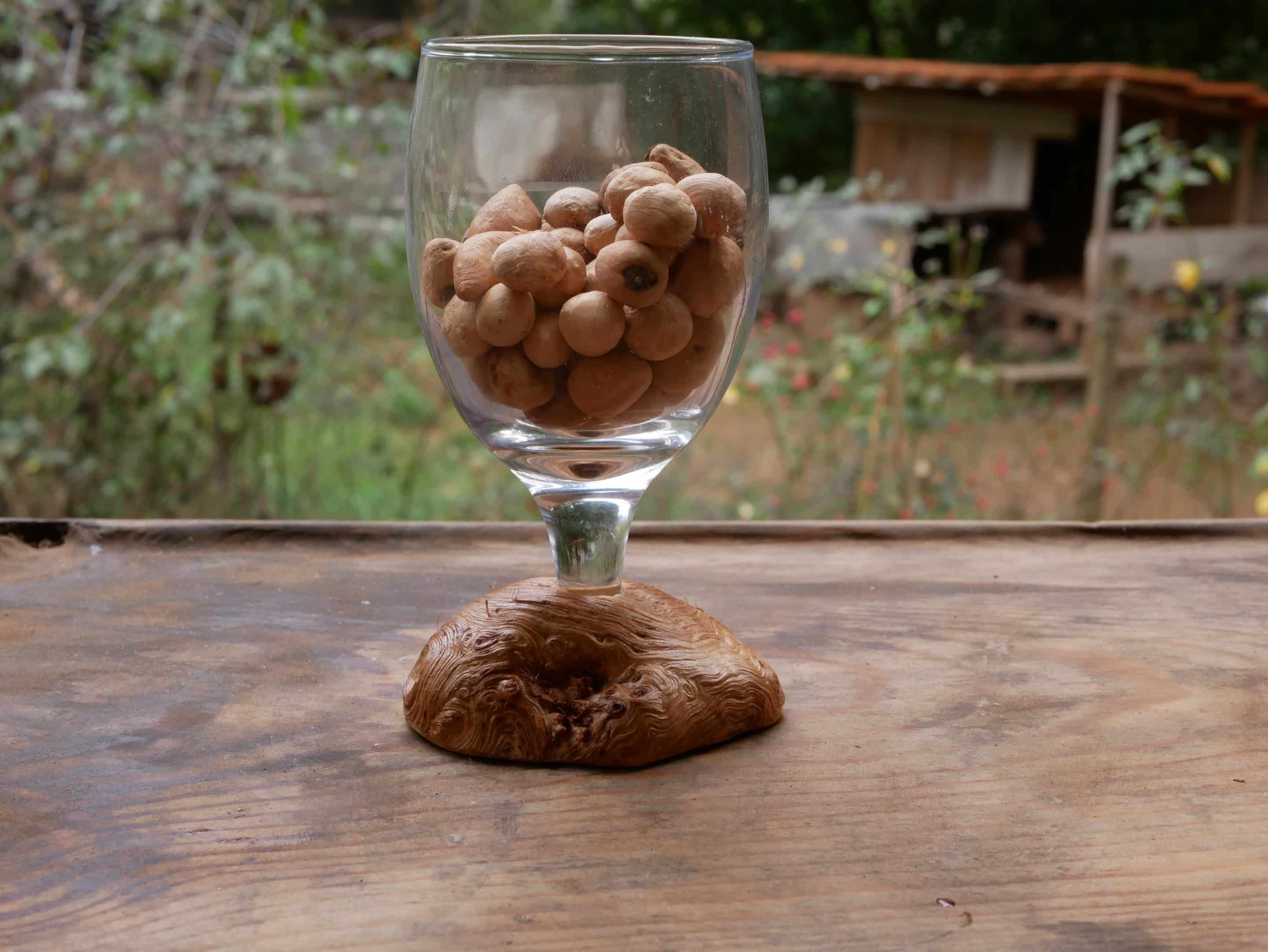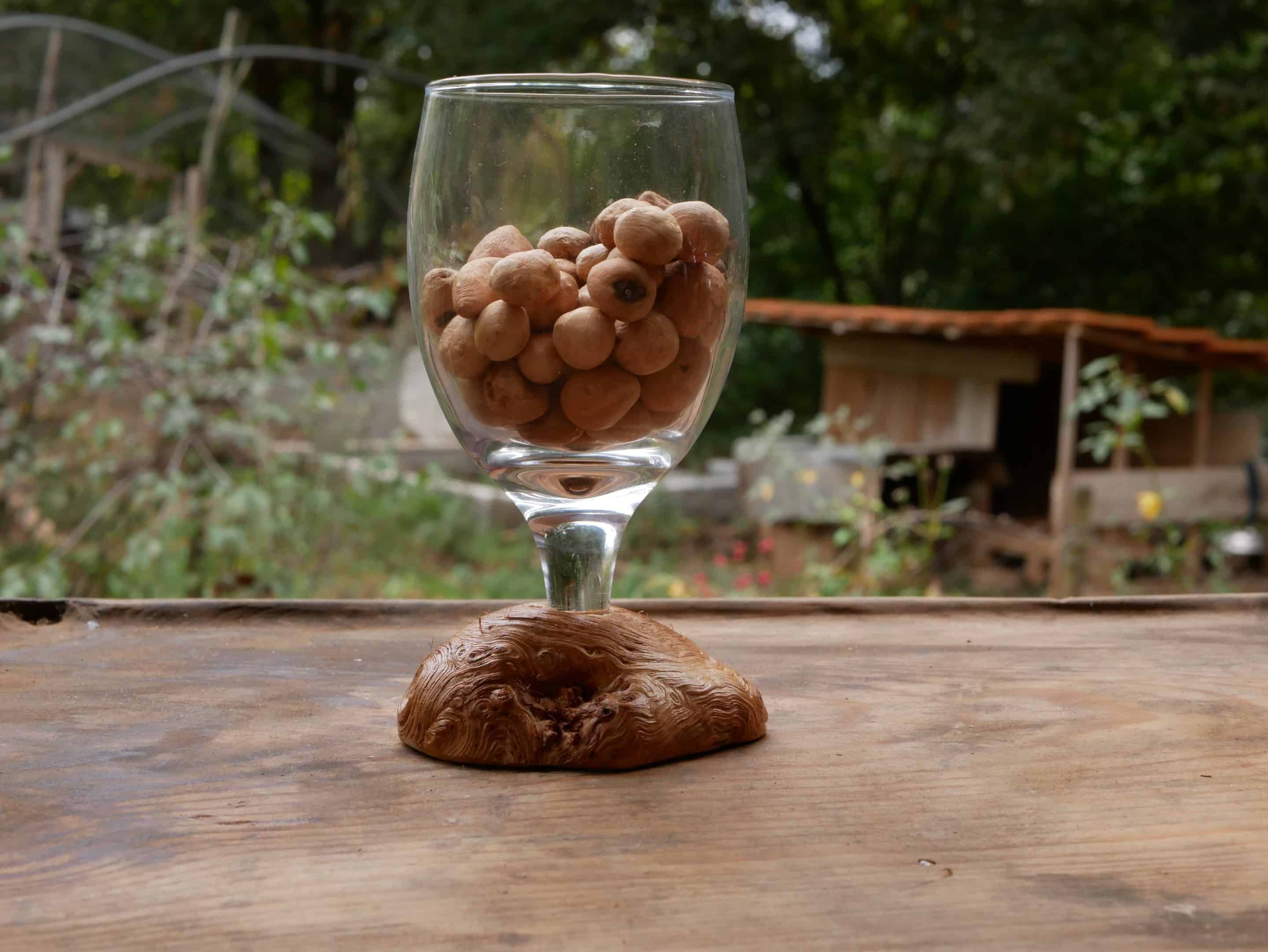 Handgefertigtes Glas mit Baumperlenfuß – Natur trifft Eleganz