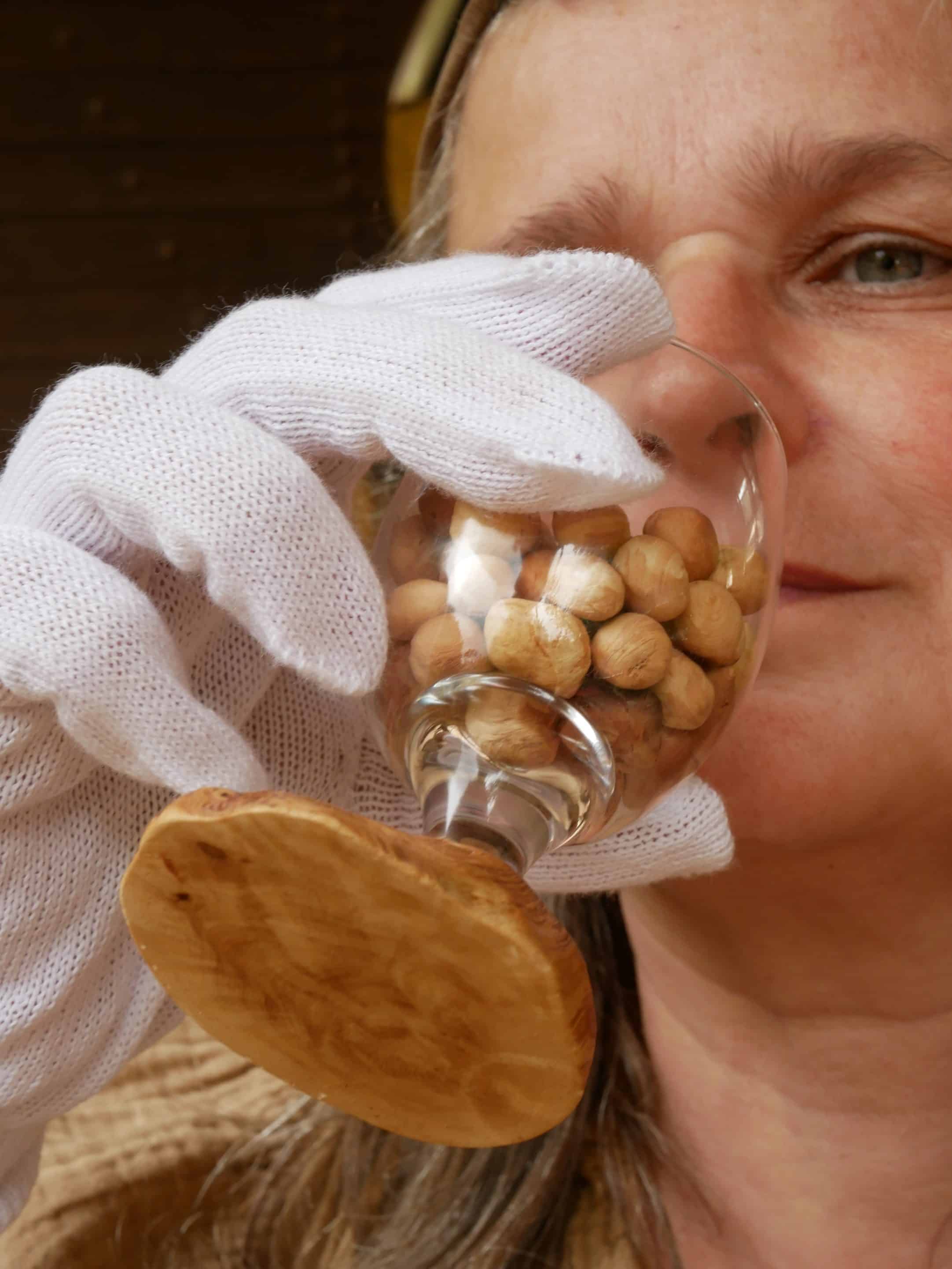 Dieses Glas ist mehr als nur ein Trinkgefäß – es ist ein Stück Natur in kunstvoller Form. Der Fuß besteht aus einer echten Baumperle, sorgfältig geschliffen und geölt, sodass ihre einzigartige Maserung und Struktur wunderbar zur Geltung kommen. Jedes Stück Holz erzählt seine eigene Geschichte – von den Wuchsformen des Baumes bis zu den feinen Linien, die Zeit und Natur geschaffen haben.