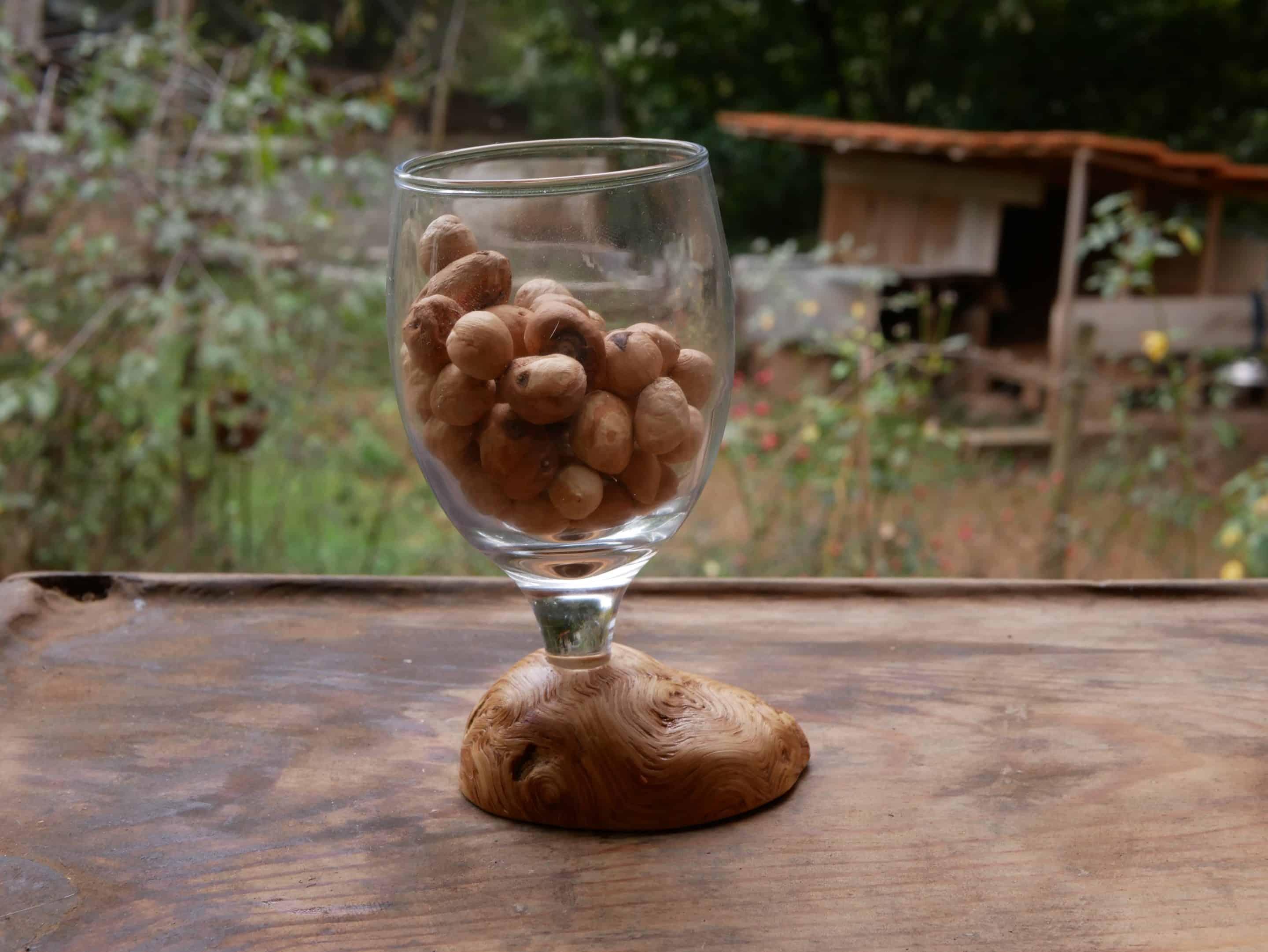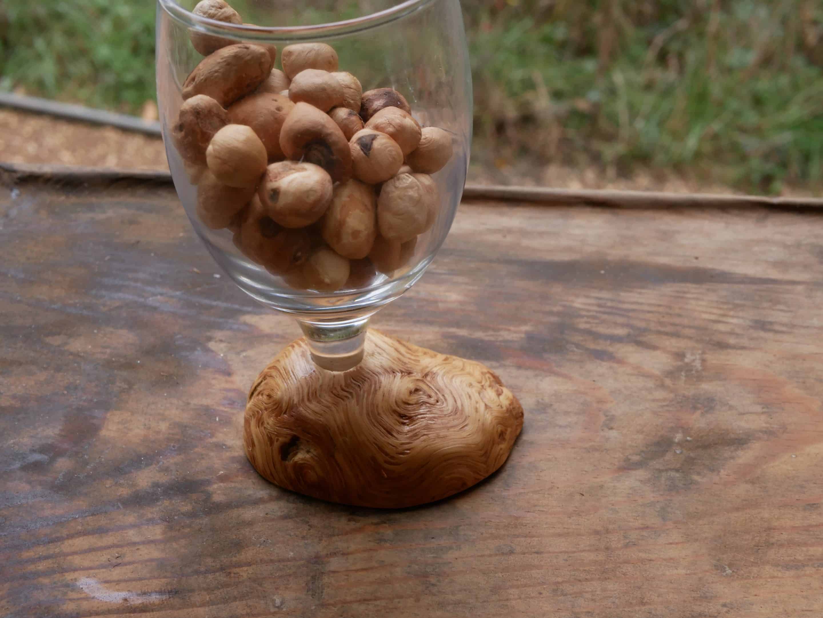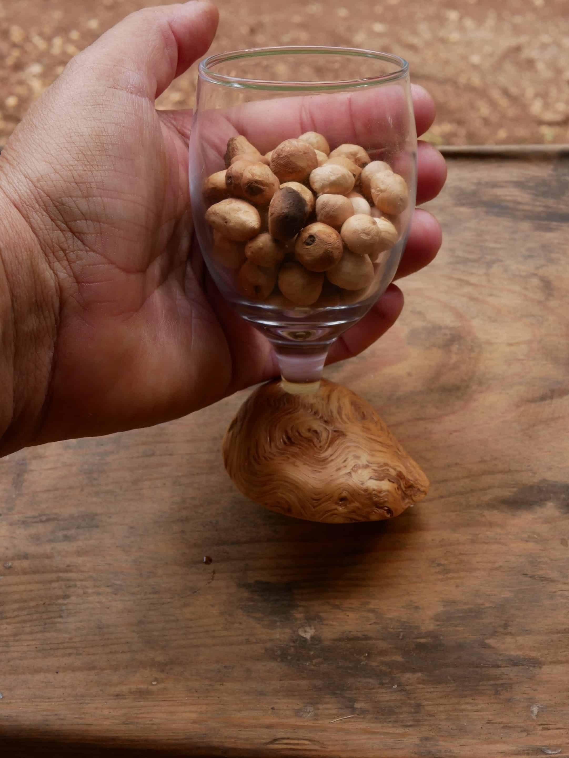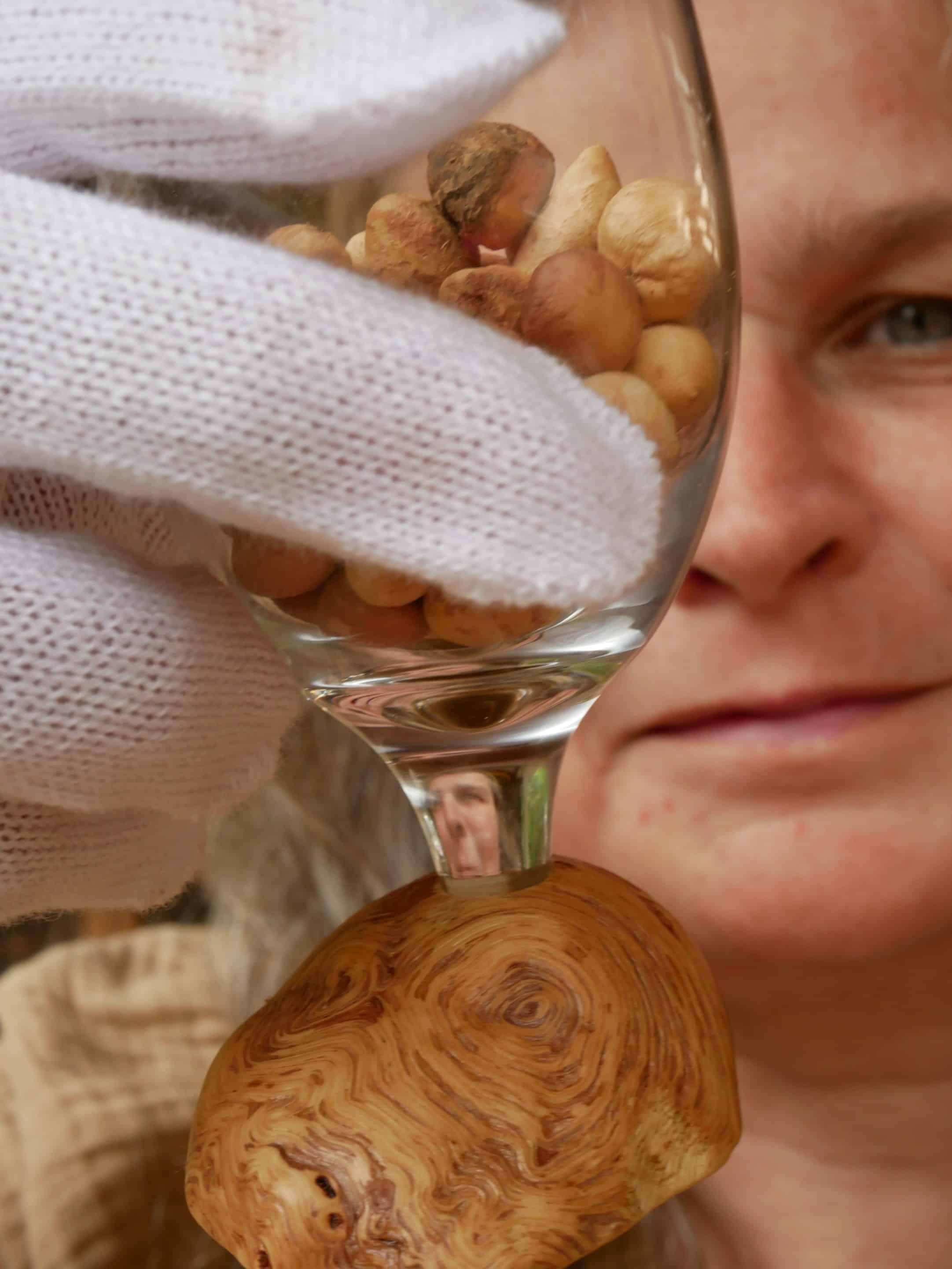 Handgefertigtes Glas mit Baumperlenfuß – Natur trifft Eleganz
