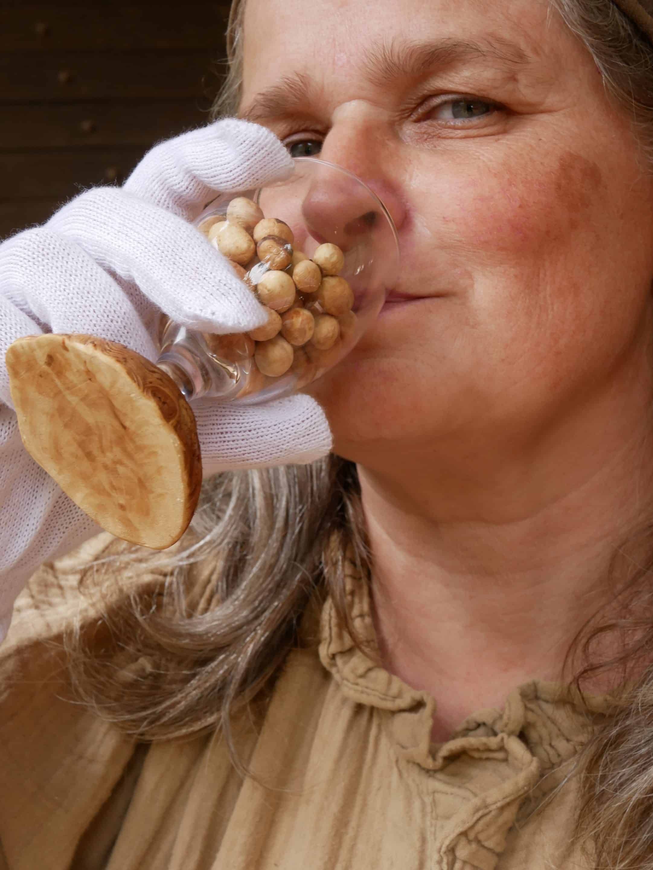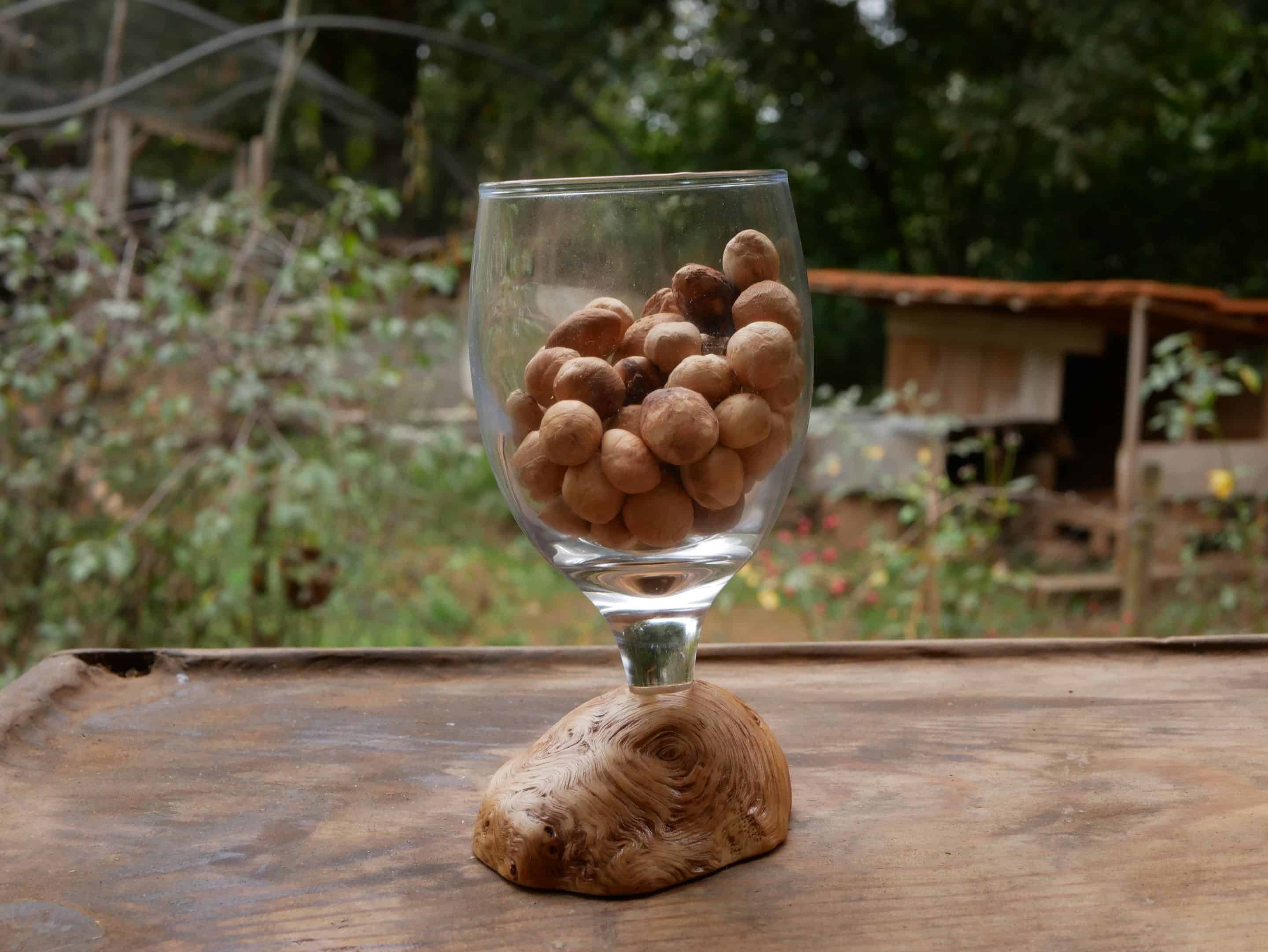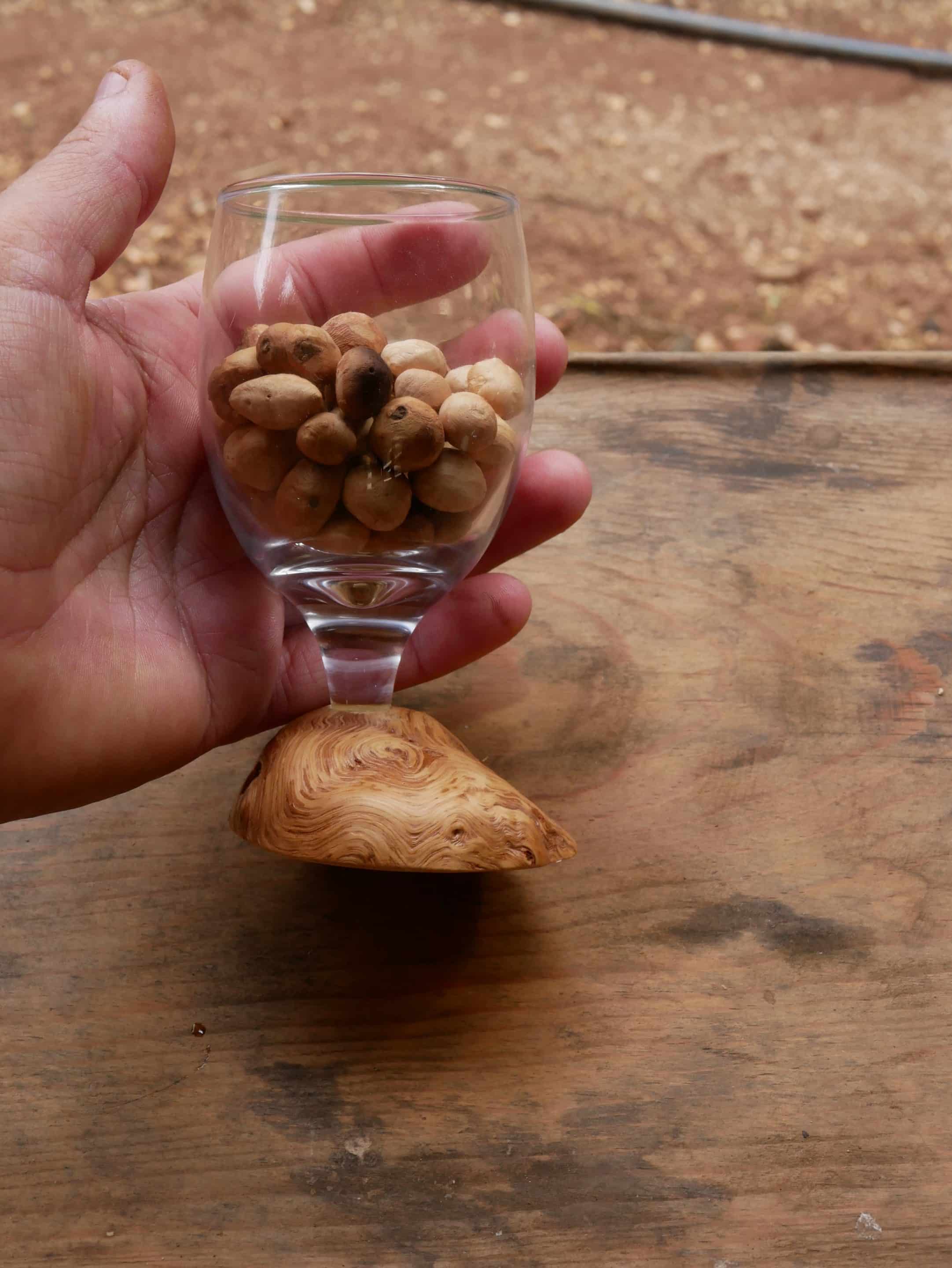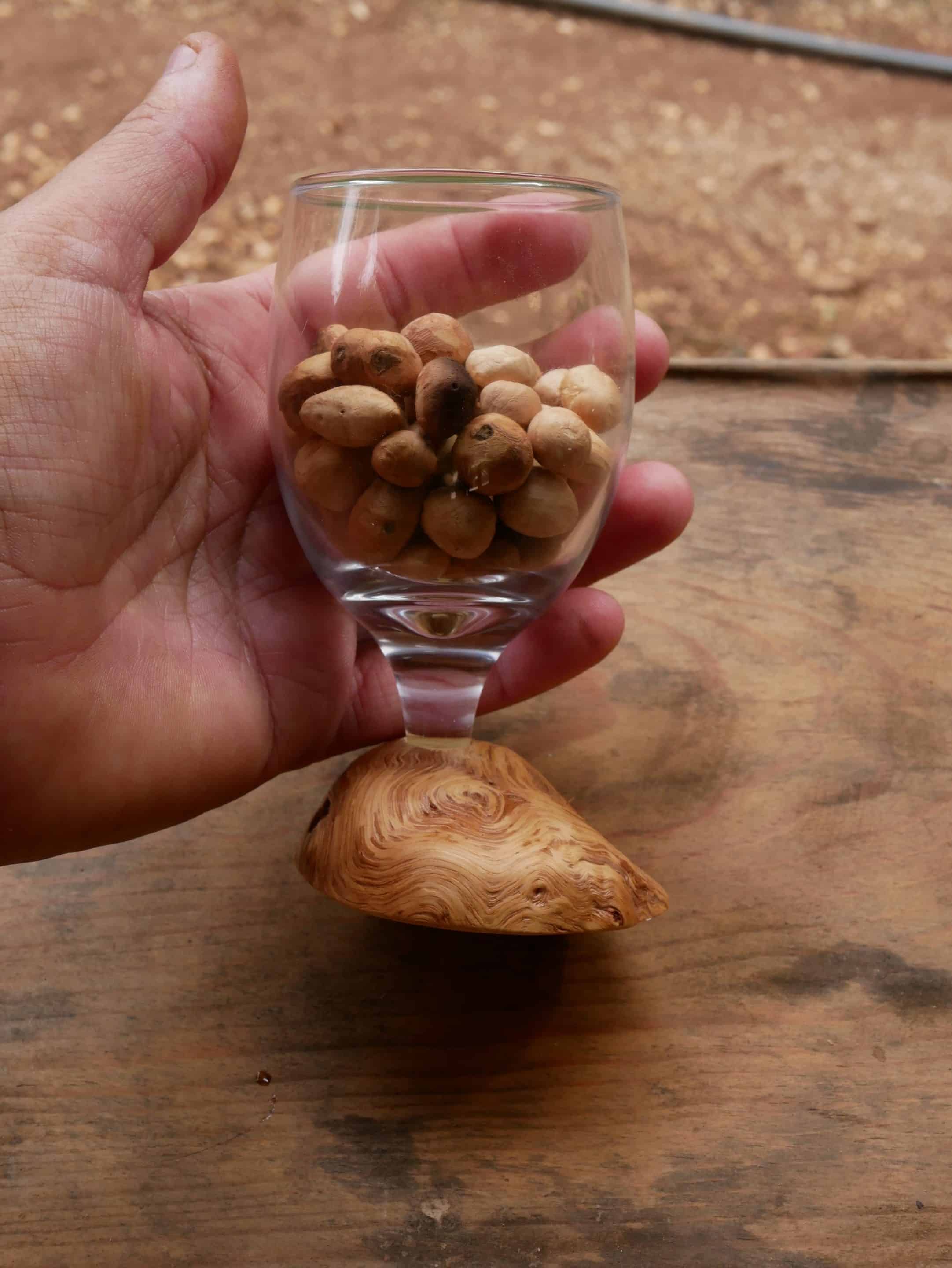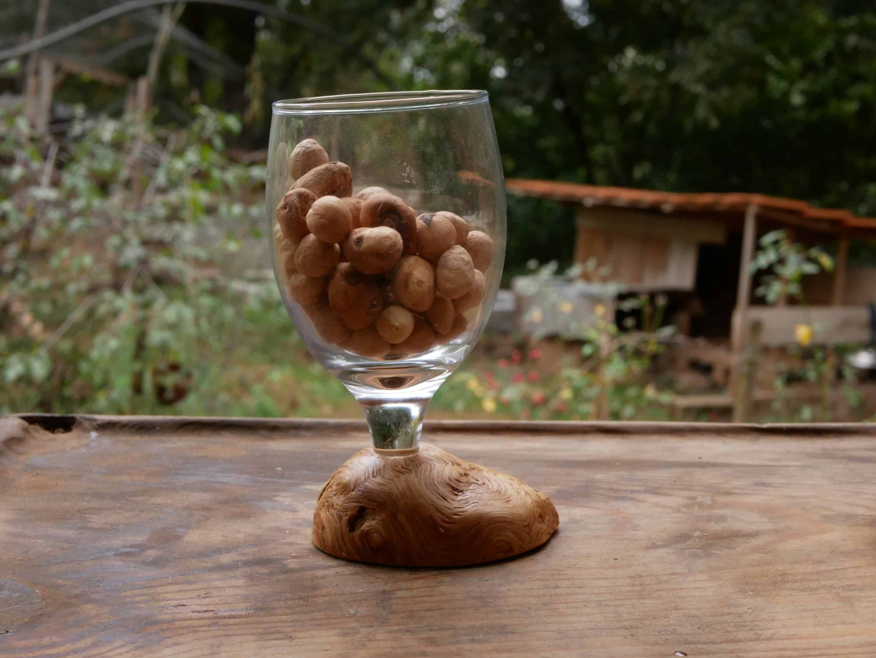 Handgefertigtes Glas mit Baumperlenfuß – Natur trifft Eleganz