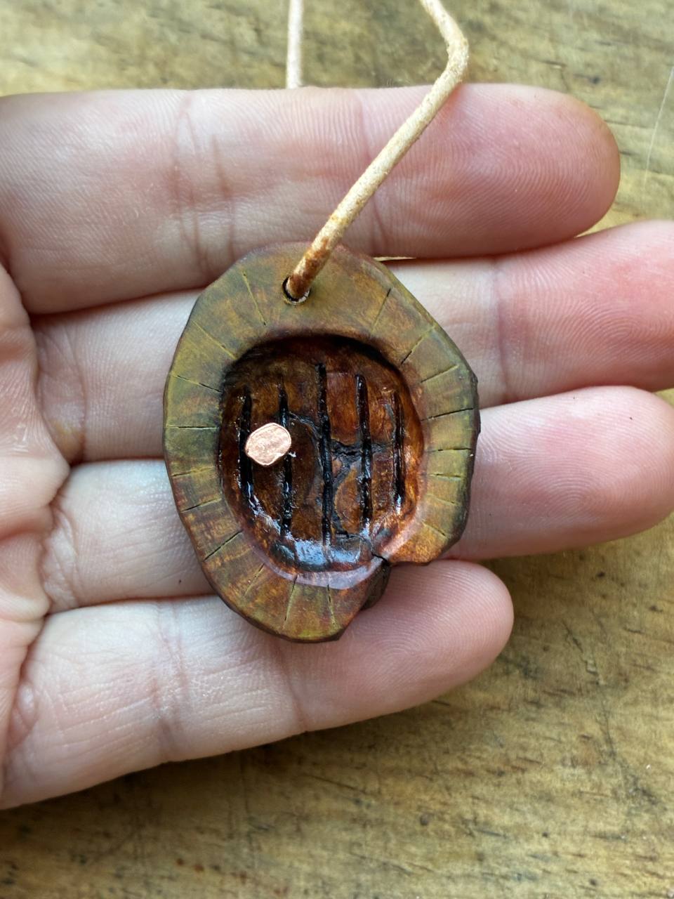 Kettenanhänger „Hobbittür“ aus Baumperle