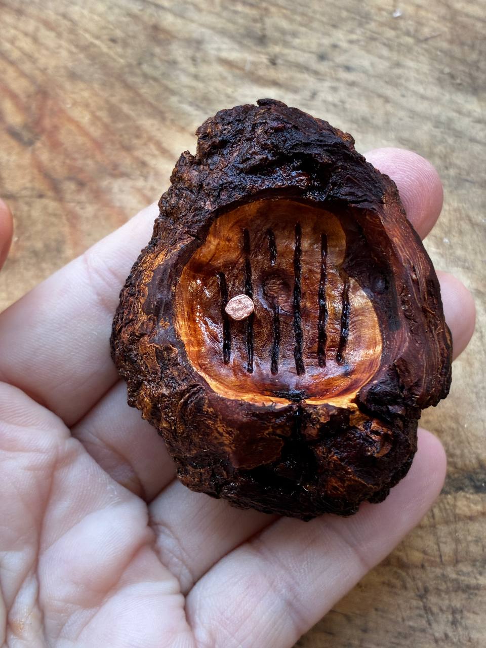 Baumperlen entstehen, wenn ein Baum im Laufe vieler Jahre besondere Wucherungen bildet – jede einzelne ist ein absolutes Unikat, mit eigener Form, Struktur und Energie. Aus diesem besonderen Naturmaterial entsteht in sorgfältiger Handarbeit eine kleine Hobbittür, die wie ein Portal in eine andere Welt wirkt.
