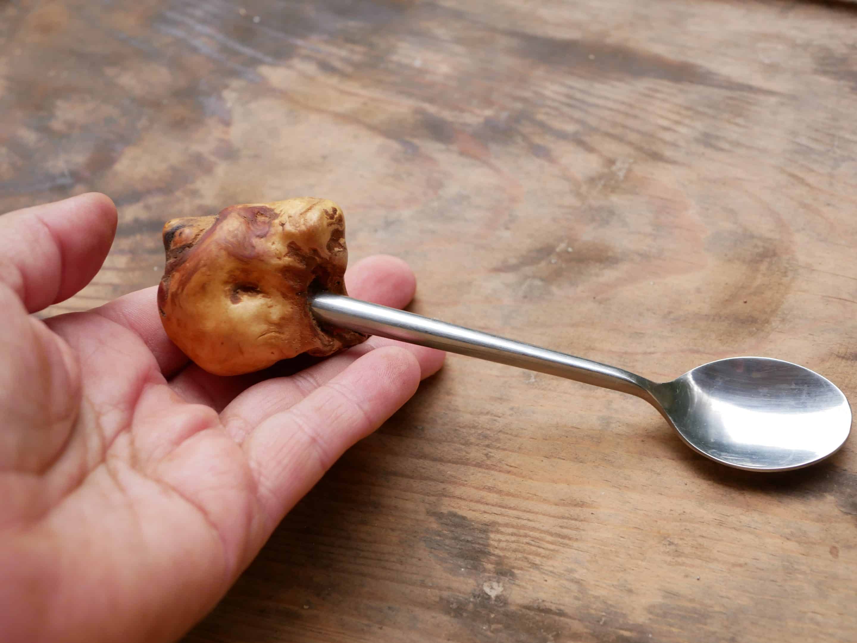 Durch die Baumperle wird jeder Löffel zu einem echten Unikat, das die Geschichte des Waldes in sich trägt.