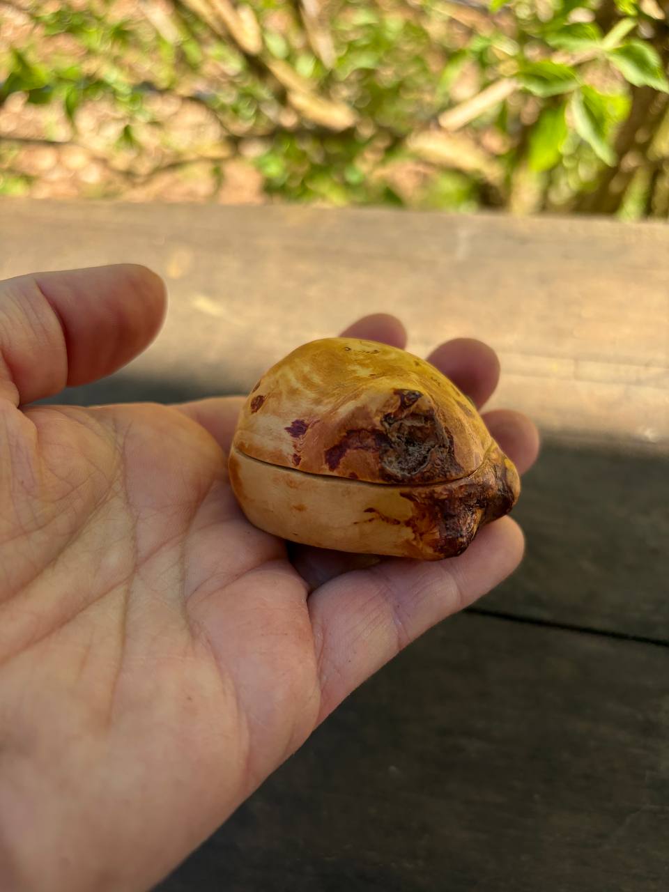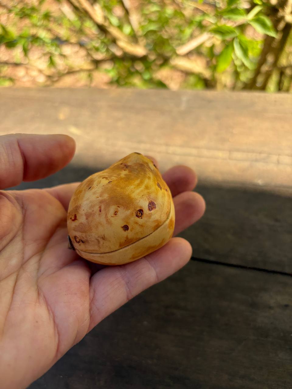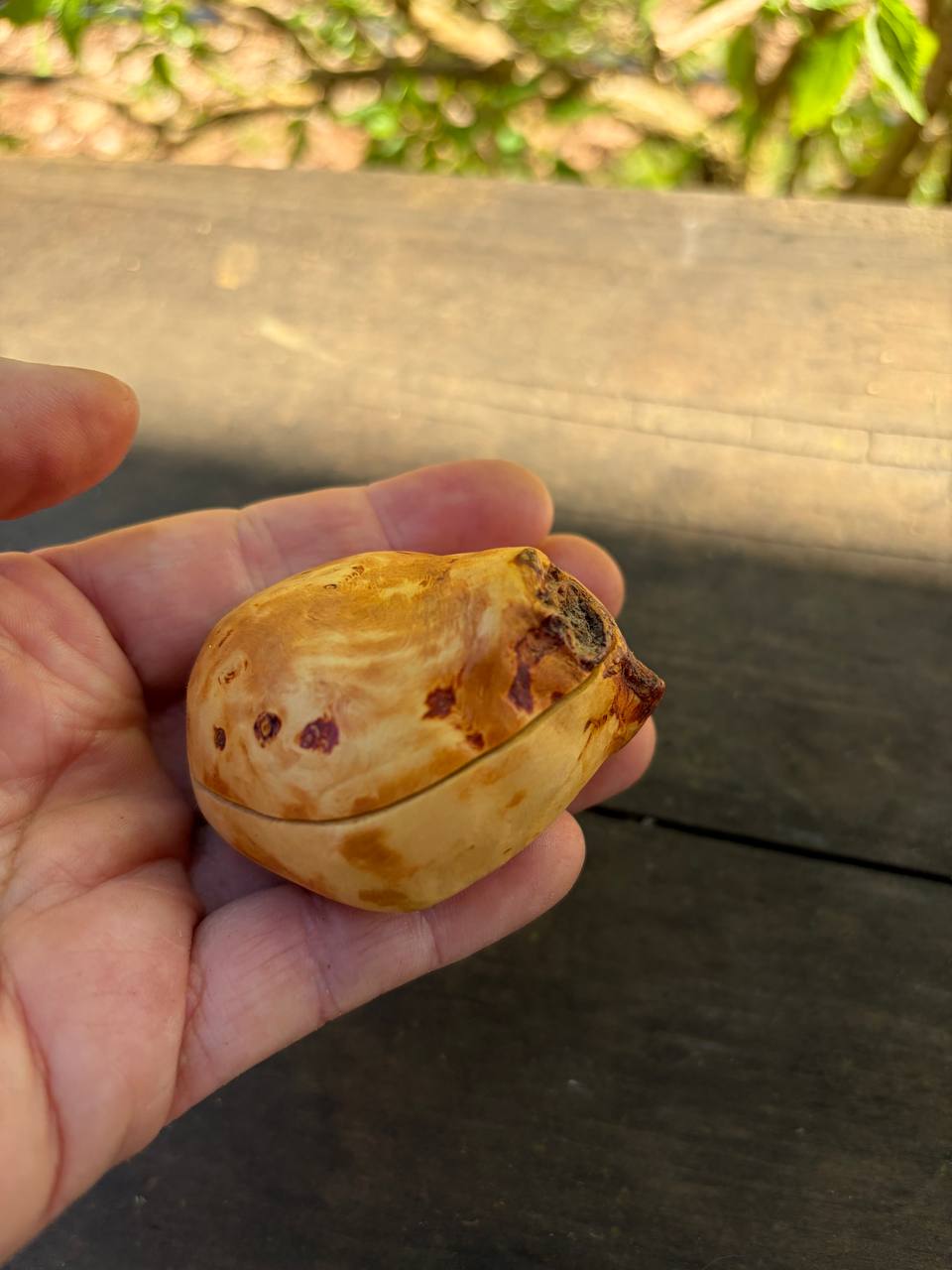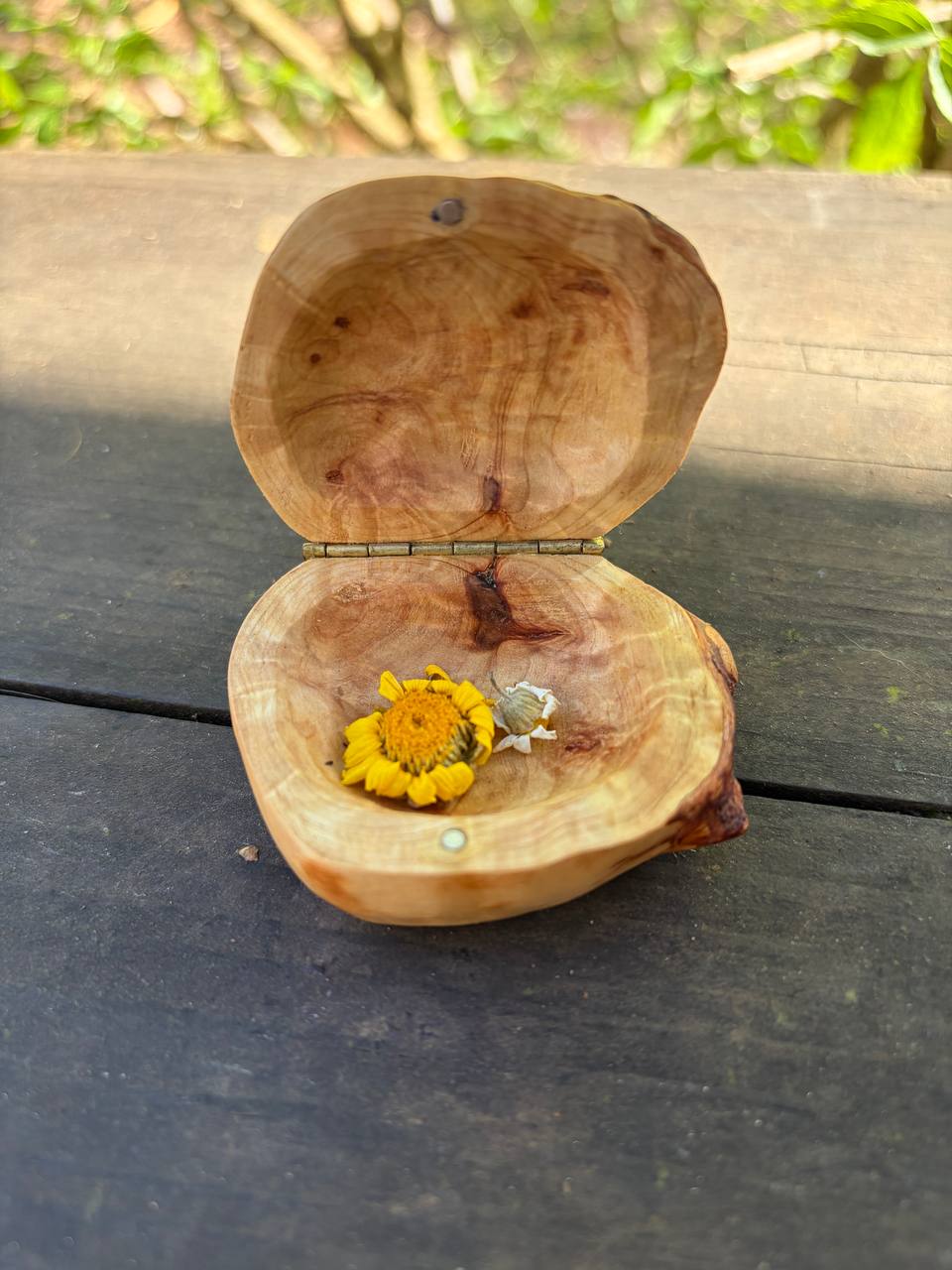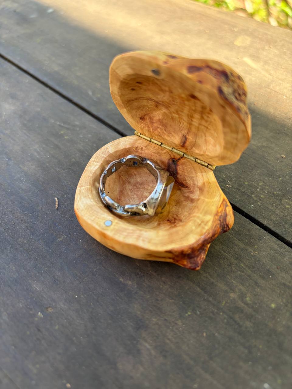 Diese außergewöhnliche Schatulle ist aus einer Baumperle gefertigt – einer seltenen Wuchsform, die ein Baum über viele Jahre hinweg bildet. Jede Baumperle erzählt ihre eigene Geschichte und macht diese Schatulle zu einem unverwechselbaren Unikat.