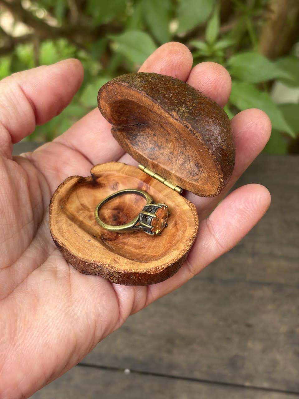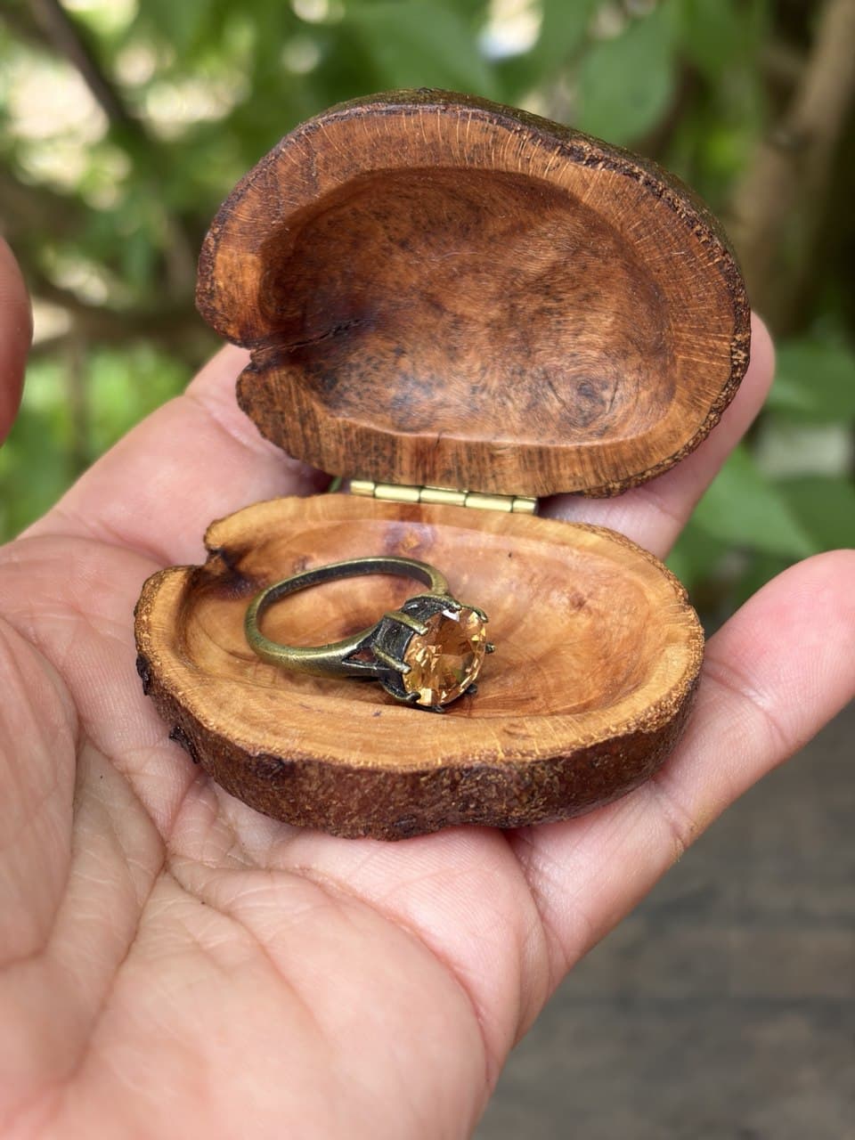 Diese außergewöhnliche Schatulle ist aus einer Baumperle gefertigt – einer seltenen Wuchsform, die ein Baum über viele Jahre hinweg bildet. Jede Baumperle erzählt ihre eigene Geschichte und macht diese Schatulle zu einem unverwechselbaren Unikat.