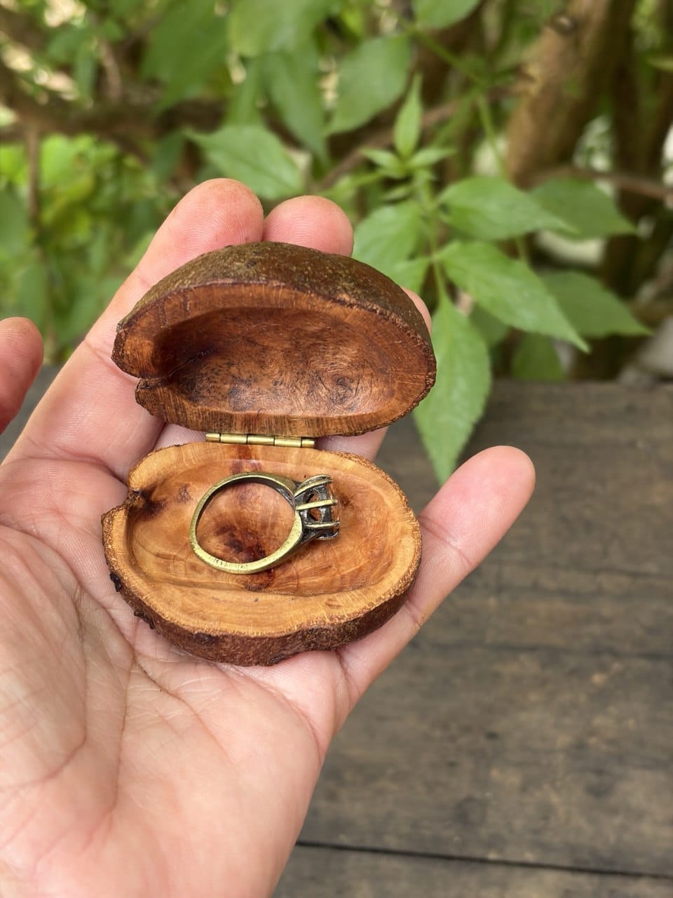 Die gewachsene, organische Form bleibt bewusst erhalten und wird behutsam ausgearbeitet. Keine gerade Linie, keine perfekte Symmetrie – stattdessen natürliche Rundungen, lebendige Maserungen, intakte Rinde außen und warme Farbnuancen. Genau diese Ursprünglichkeit verleiht der Schatulle ihren besonderen Charakter und ihre ausdrucksstarke Ästhetik.